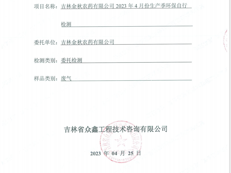 2023吉林金秋农药有限公司自...